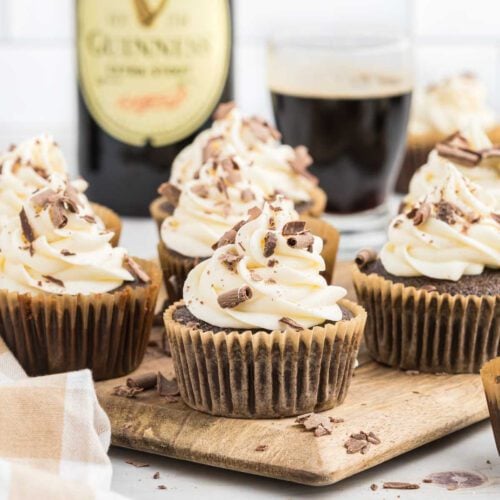 Rich and moist Guinness cupcakes bring a traditional Irish-inspired flavor to your dessert table. Topped with creamy frosting, they’re perfect for adults celebrating St. Patrick’s Day.