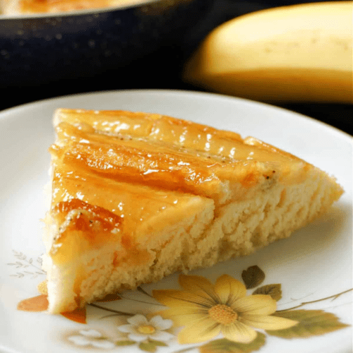 This upside down banana cake with maple caramel sauce is a fantastic holiday dessert. It includes overripe bananas, pecans, cinnamon, and vanilla extract with delicious maple syrup.