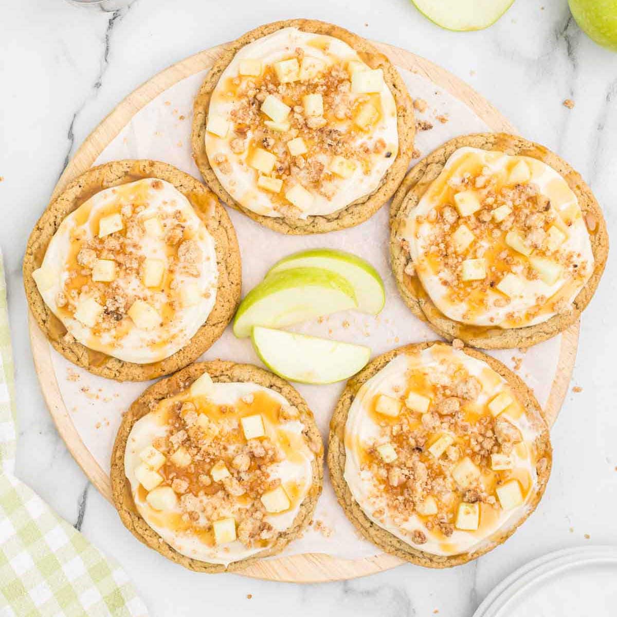 - Wait on toppings – If you aren’t serving the cookies right away, hold off on adding the fresh apples and caramel drizzle. This keeps the cookies from getting soggy.