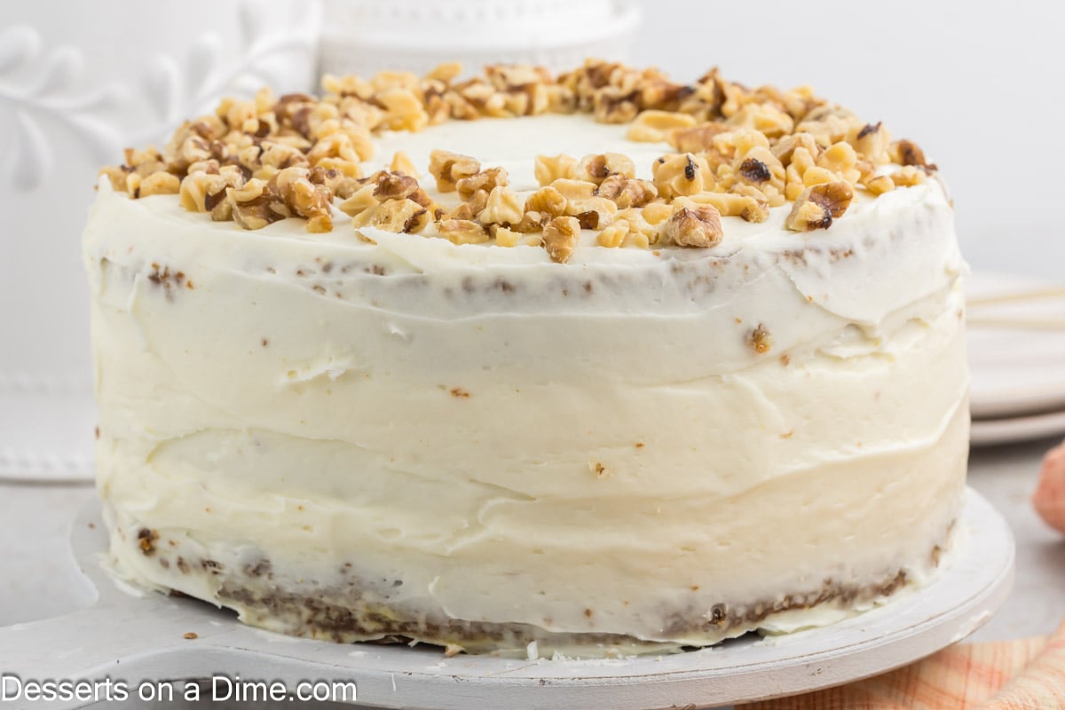 At room temperature: Store the frosted carrot cake in a covered cake dome or airtight container for up to 2 days if your kitchen is cool.