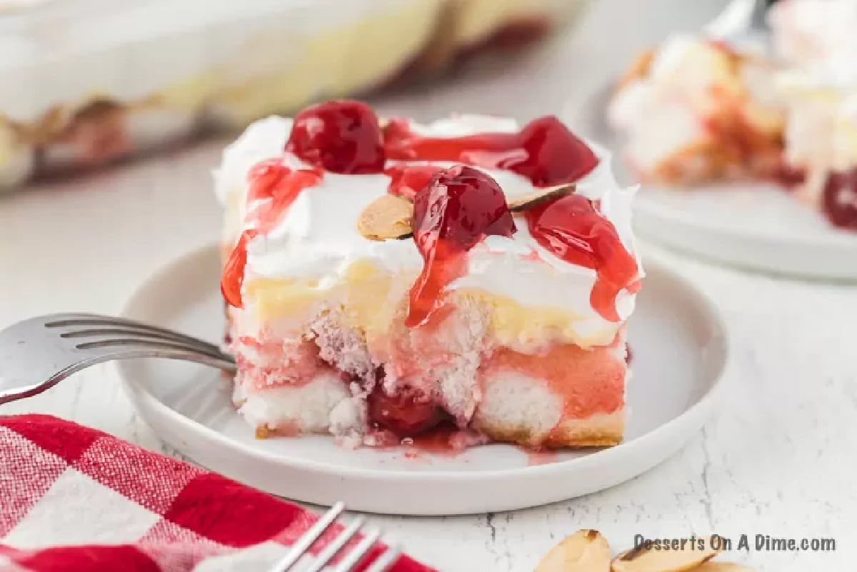 - Sweet Cherry Flavor: Cherry pie filling adds a bright, fruity contrast to the creamy layers.