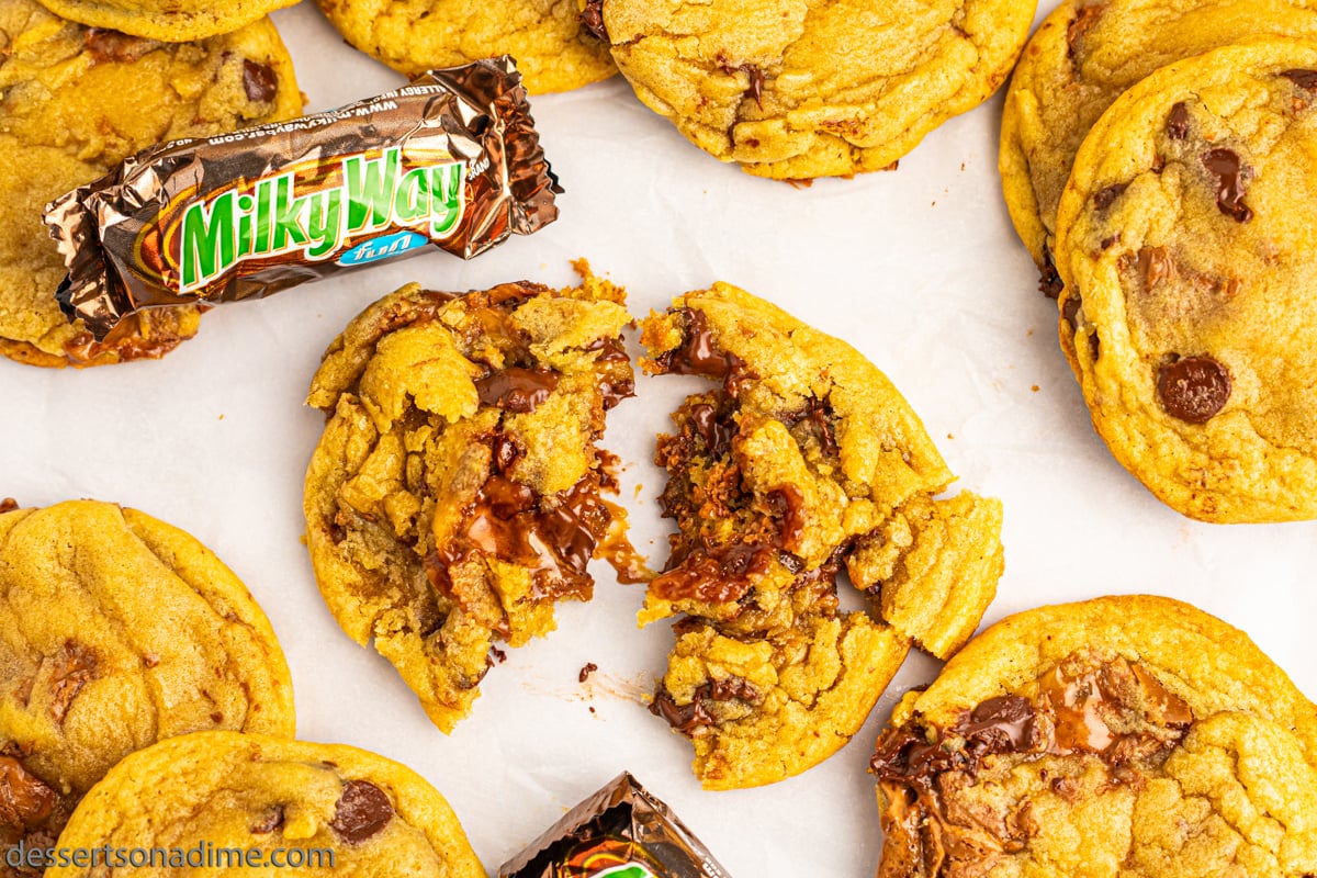 - Fun Size Milky Way Candy Bars – Chop into bite-sized pieces for gooey chocolate and caramel in every cookie.