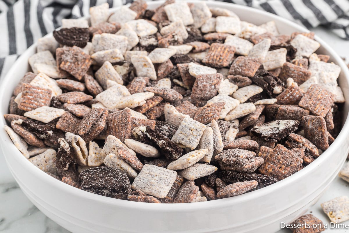 Kids and adults alike love its rich chocolate flavor combined with the satisfying crunch of Oreos, making it a go-to snack for any occasion. Cookies and Cream Puppy chow is one of our favorite Oreo Desserts and a fun twist on traditional puppy chow.