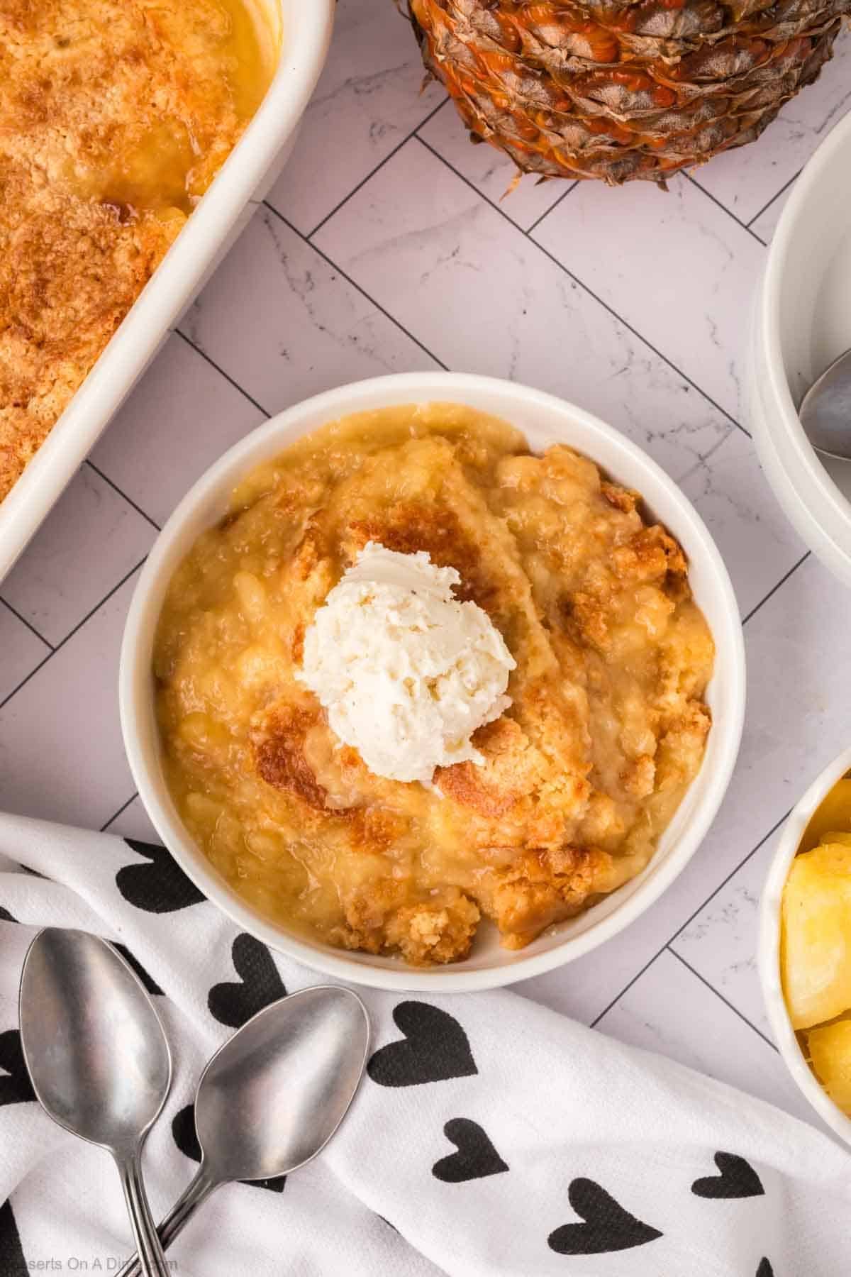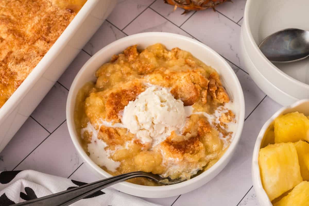 - Cherry Pineapple Dump Cake – Add 1 can (21 ounces) cherry pie filling along with the pineapple for a sweet and fruity twist that adds beautiful color and flavor.