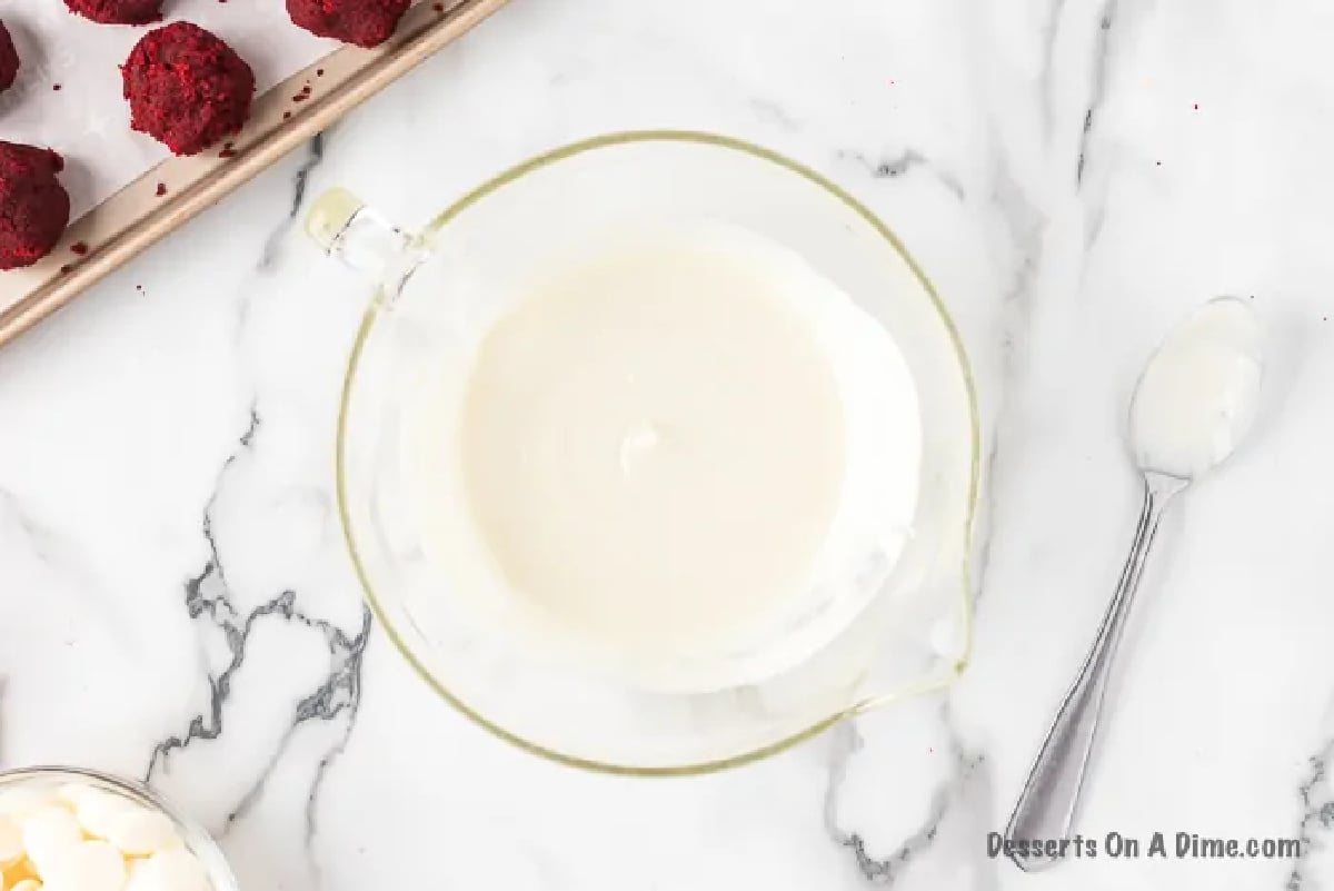 Step 6. Melt the white chocolate chips and coconut oil in a microwave safe bowl for 30 seconds. Continue to melt in 30 seconds increments until smooth and creamy.