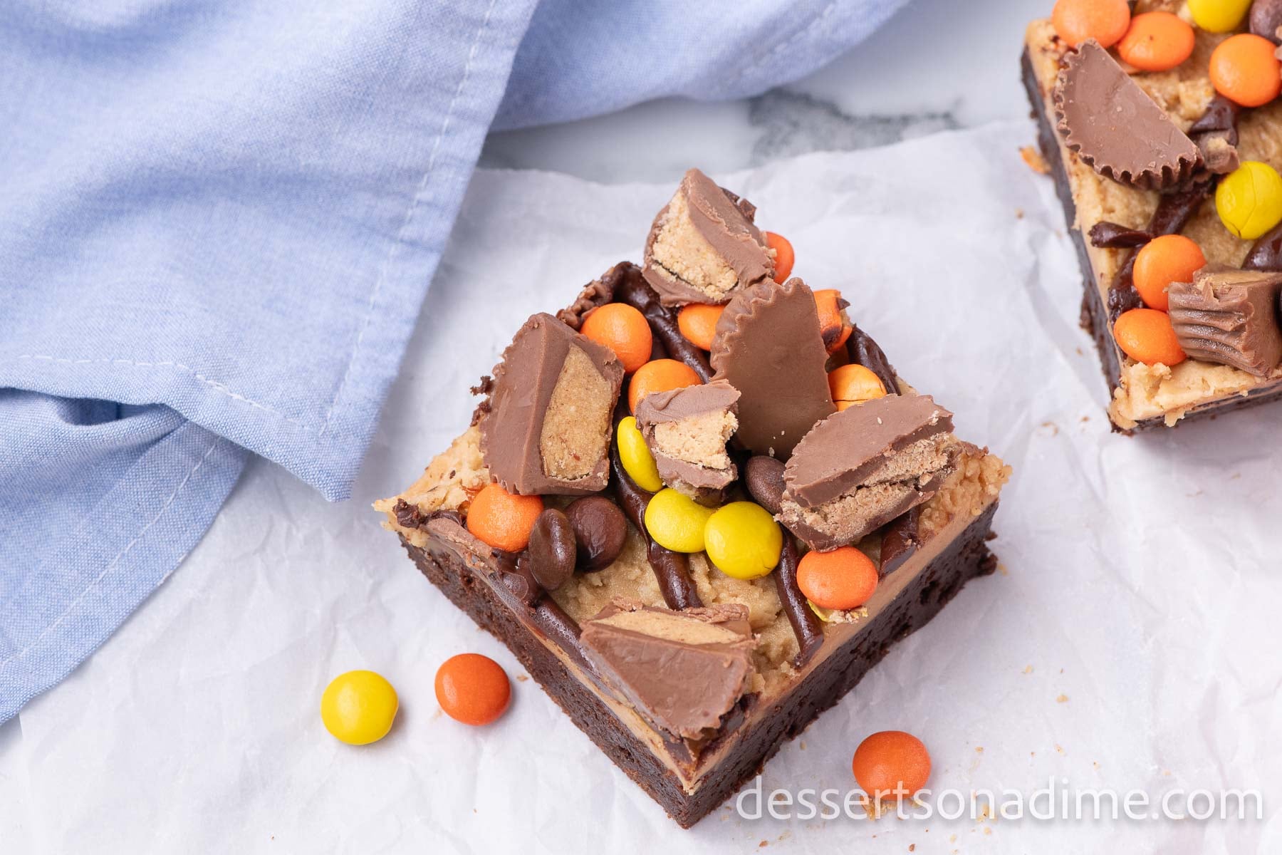 Make-Ahead: You can bake the brownies a day or two in advance. If adding peanut butter topping or candy, store separately and add just before serving for the best appearance and texture.