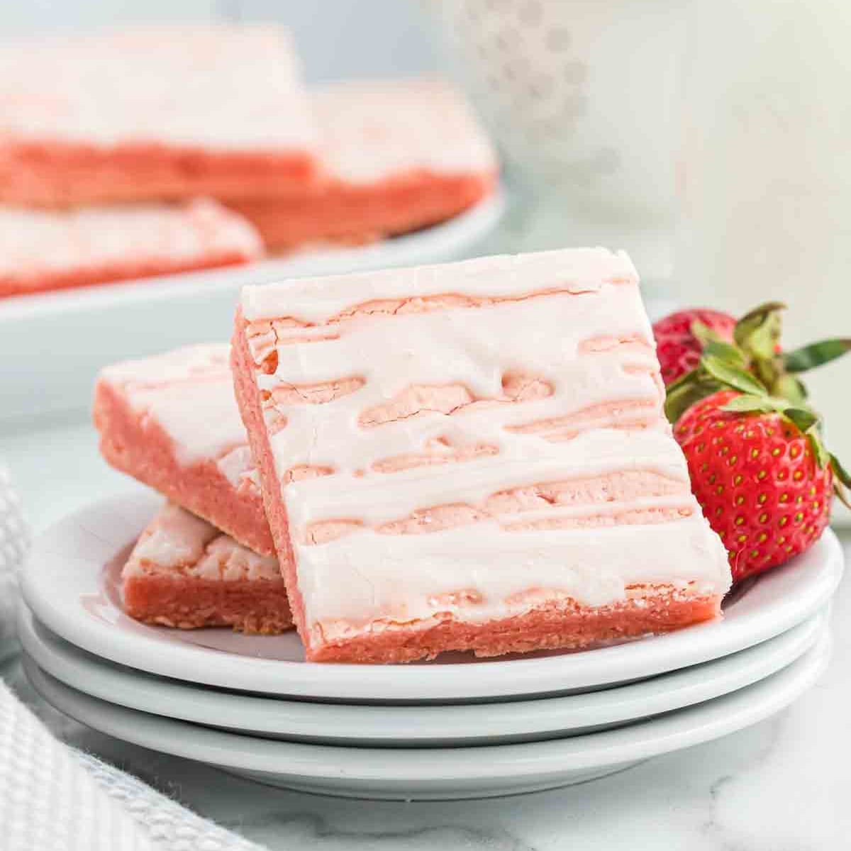 Strawberry Brownies recipe is a quick and easy dessert that everyone will enjoy. It starts with a boxed cake mix and everything is topped with a delightful glaze. It is so simple but tastes amazing.