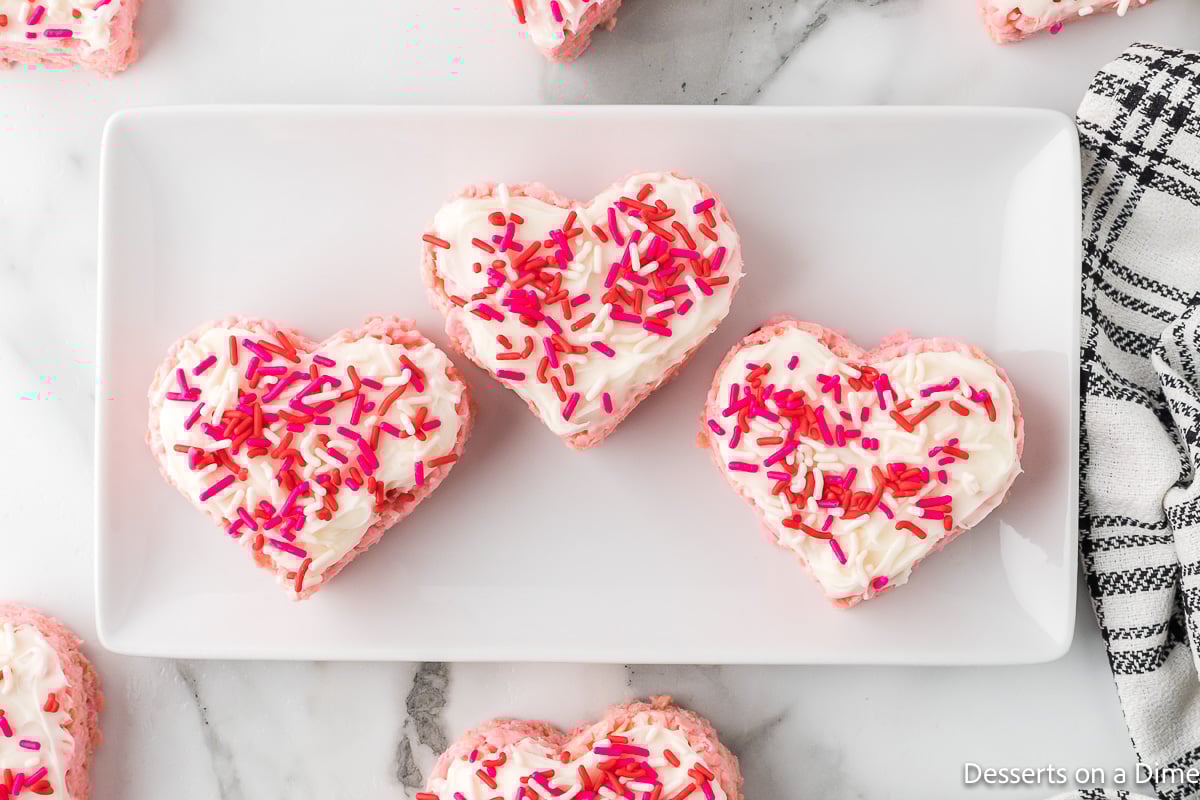 - Use a Heart Cookie Cutter to cut out heart shaped rice Krispie treats.