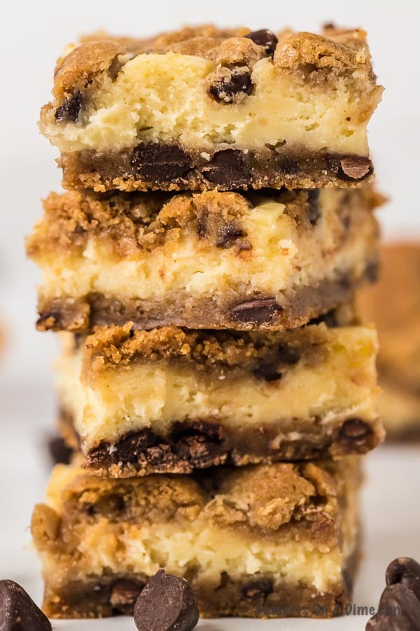 Chocolate Chip Cream Cheese Bars only require 5 ingredients and it starts with refrigerated cookie dough.