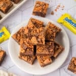 Pour the mixture into the prepared pan and spread it evenly with a rubber spatula. Sprinkle the reserved ½ cup of Butterfinger pieces over the top, pressing them lightly into the fudge.