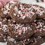 Chocolate peppermint cookies recipe starts with a cake mix and tastes amazing. Each bite is loaded with chocolate and crushed candy canes.