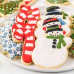 Roll the dough out on the cutting board and using your favorite Christmas cookie cutter begin to make your cookies.