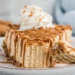 After chilling for several hours, drizzle the melted cookie butter on top and served topped with the whipped cream and crushed cookies.