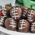 Add the melted white chocolate to a ziplock bag with one of the small corners cut off one of the ends. Create the laces on each of the chocolate covered strawberries with the melted white chocolate.