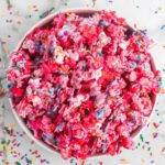 Unicorn Popcorn is a fun and colorful recipe that is perfect for a birthday party. The sweet and salty blend of popcorn and sprinkles with candy melts is delicious.